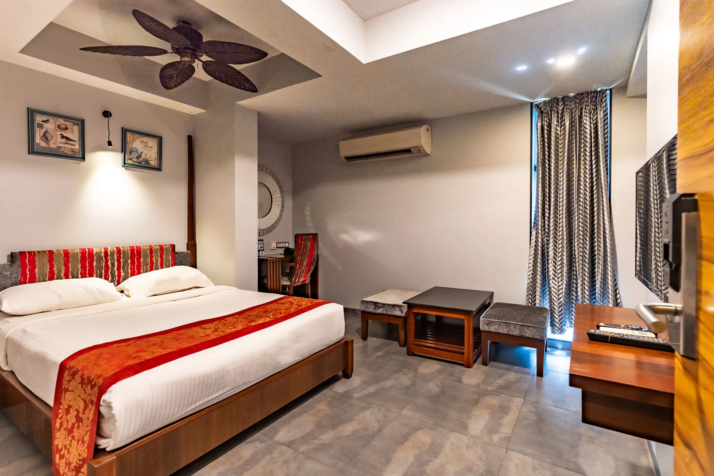 The Premium Deluxe Room is designed for guests seeking extra space and privacy. Featuring a private terrace garden, this room overlooks the pool and garden lounge — perfect for relaxing sunsets in Goa.